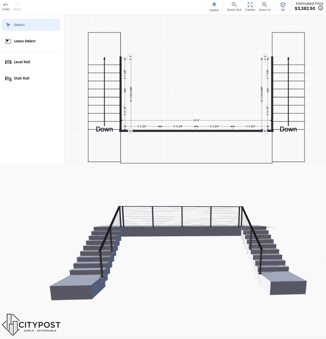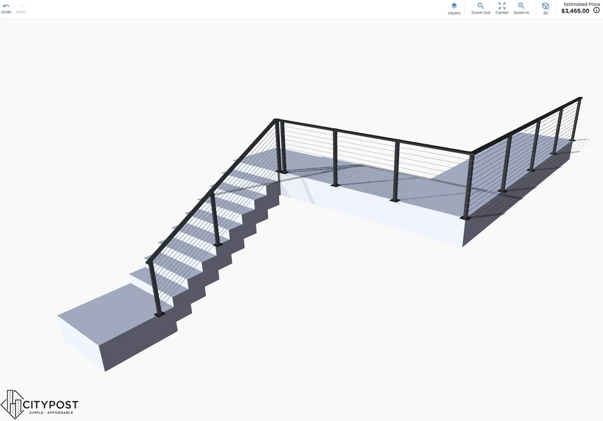 CityPost creates DIY cable railings that customers can install themselves. To streamline this process they needed software that allowed their customers to design their railings online with all of their customization options and see their designs visualized in 2D and 3D.