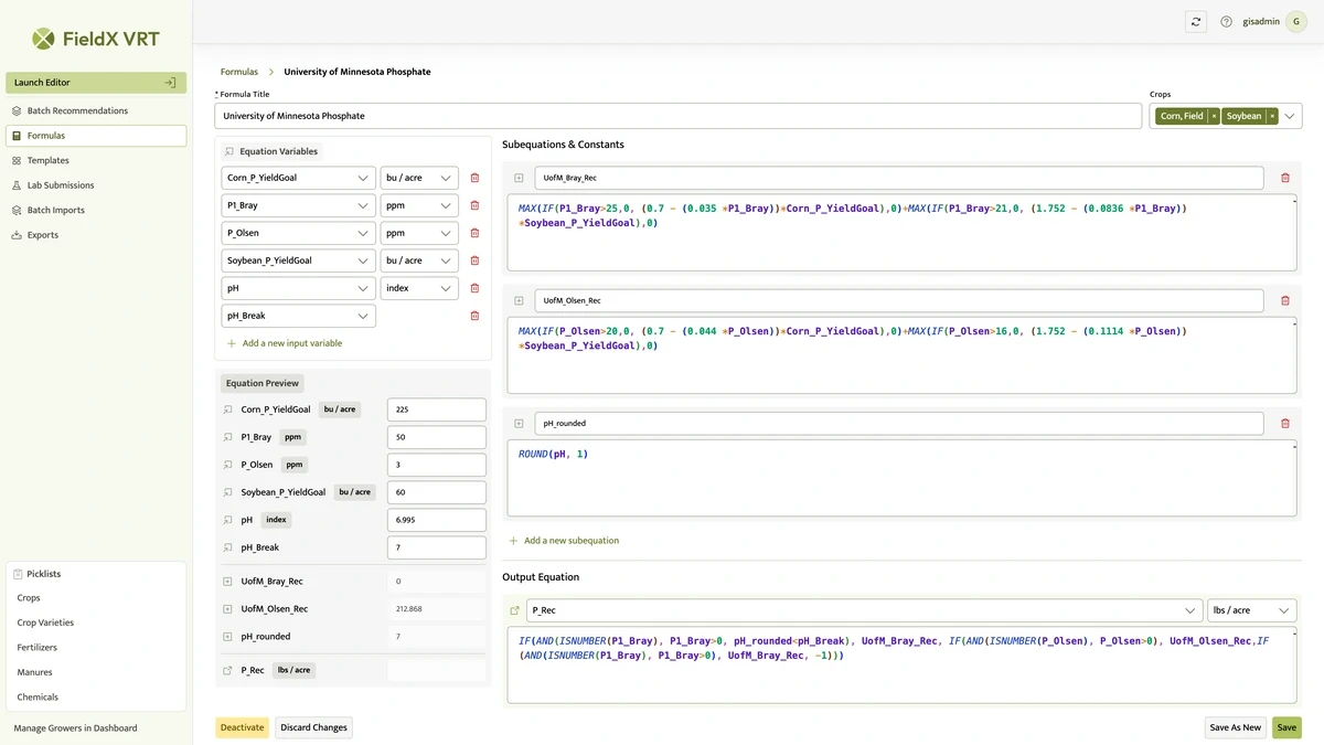 At the heart of the solution is the Formula Editor, an Excel-like tool that empowers users to customize nutrient calculations for diverse crop needs. This flexibility ensures recommendations are tailored to specific soil conditions, maximizing yield while minimizing waste.