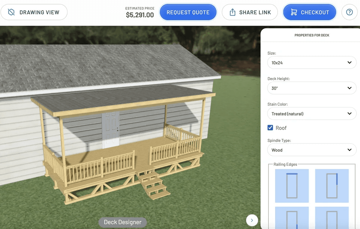 Put control in the hands of your customers and move your products faster by allowing them to design their deck, saving you time.