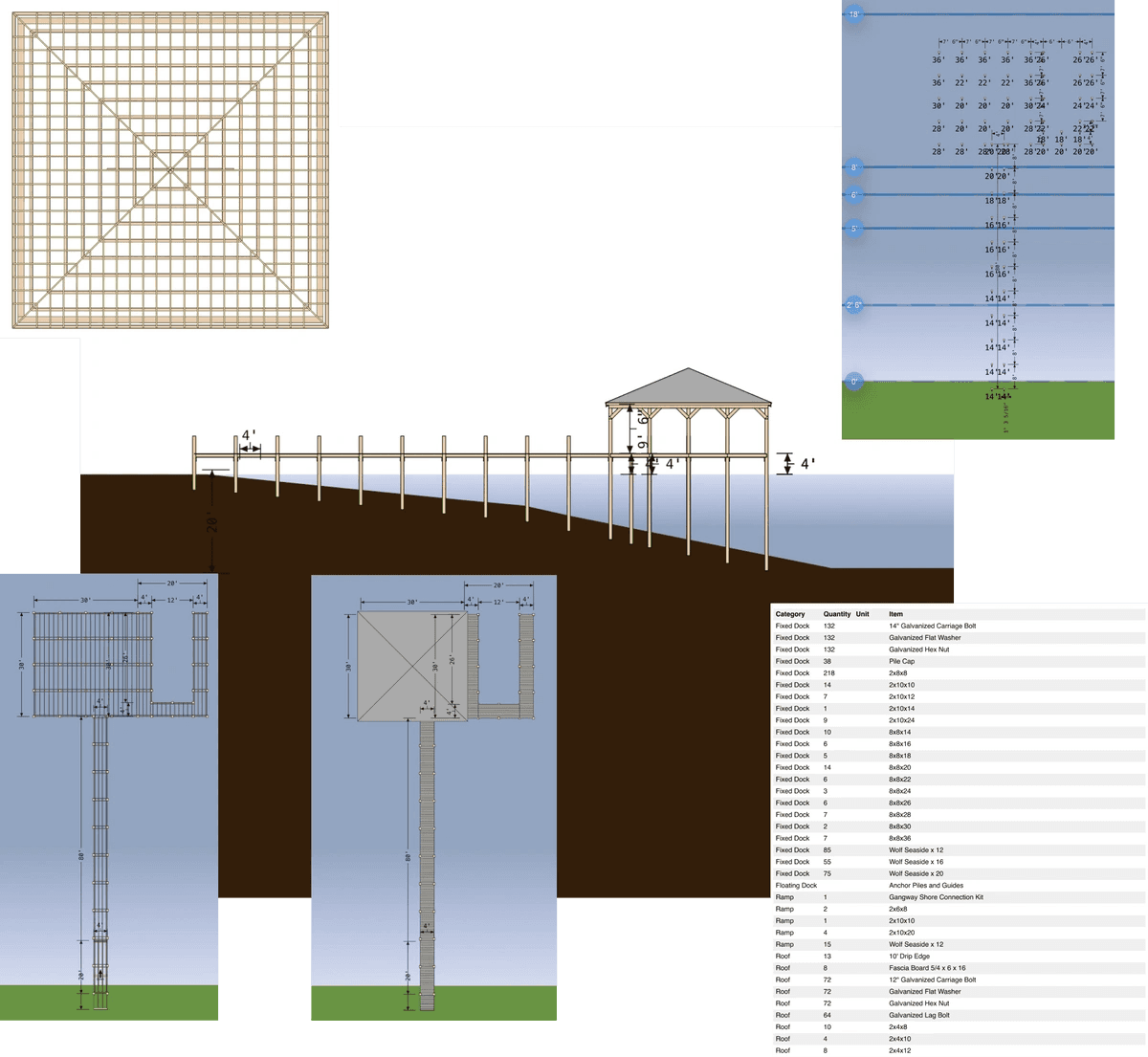 Dock Designer builds a rich-intelligent model of your docks so that as you design, every detail of your layout is generated in real-time. This means you can instantly produce detailed blueprints, installation guides, or even integrate with e-commerce platforms.